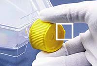 ●ベントキャップ(フィルターなし) キャップについているVENTマークが真上の位置(1/4回転)にくる様にゆるめると、抵抗ストッパーがあり、キャップのゆるめすぎによるクロスコンタミネーションを防ぐ機構となっています。 抵抗ストッパーの位置では、ロック状態になりますので、微開封を維持し、フラスコ内の圧力や温度の変化によるキャップ落下、フラスコの変形を防ぎます。 |